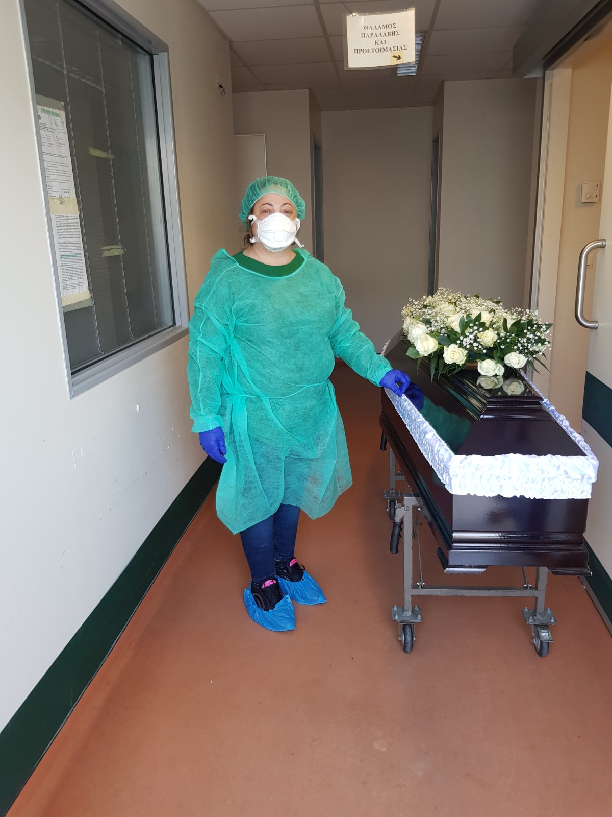 Θα πάρουμε τη σωρό, φερ’ ειπείν, αν θα είναι σε κάποιο νοσοκομείο. Θα παραλάβουμε τη σωρό. Μπορείς να την προετοιμάσεις και στο νοσοκομείο, αλλά θα προτιμούσα και προτιμάω να την πάω στον δικό μου χώρο. Να πλένω το σώμα, να πλένω το σώμα, να το βάλω τα αρωματικά, τις πούδρες, να το χτενίσω, να του βάλω τα ρούχα, τα ρούχα που μου δίνει η οικογένεια ή τα αγαπημένα ρούχα του συγχωρεμένου ή της συγχωρεμένης. Λοιπόν, και να τοποθετήσω στο φέρετρο και να πάμε για τα περαιτέρω. Αυτό.