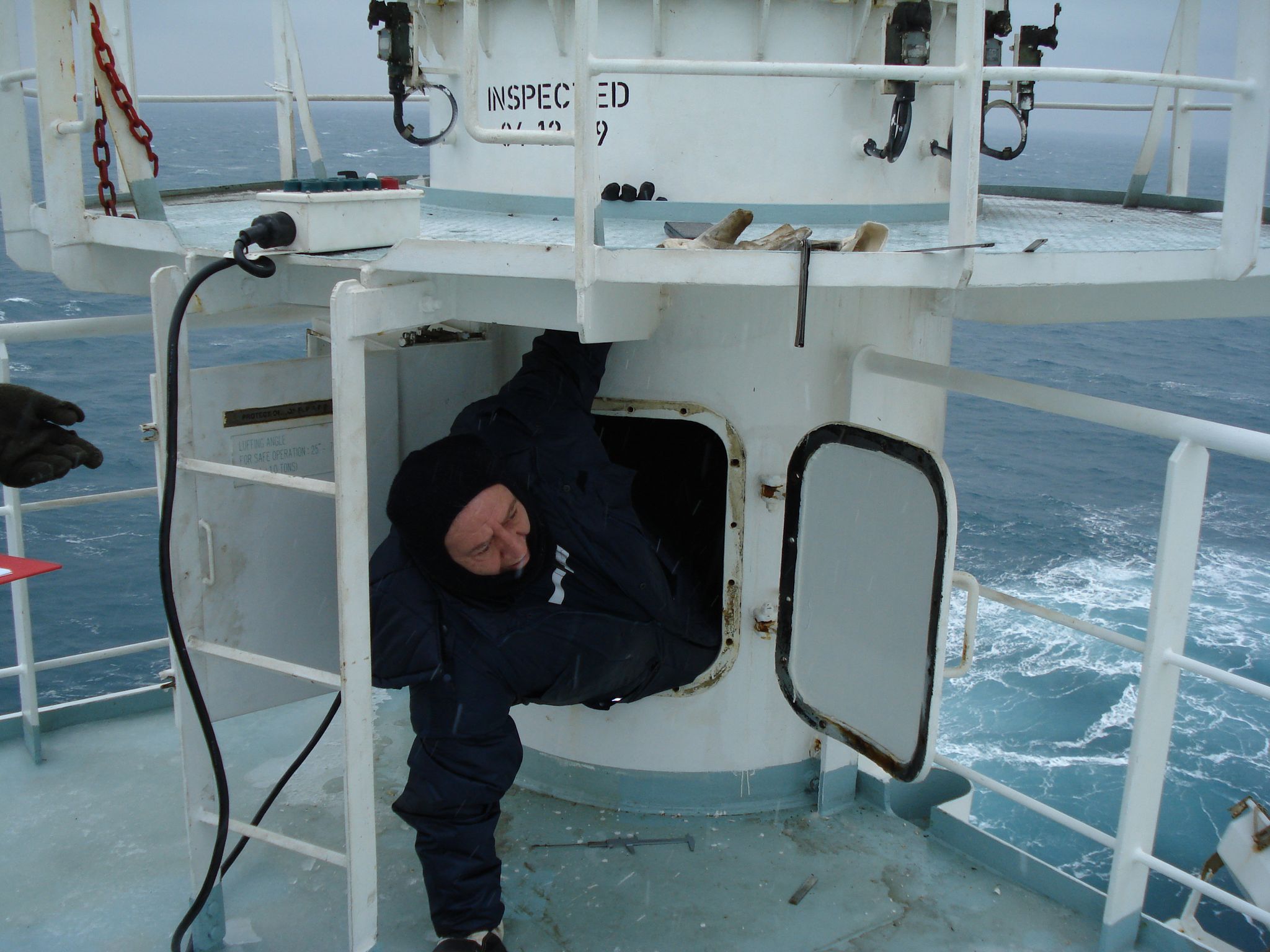 Στο καράβι διασκεδάζοντας εν ώρα εργασίας.