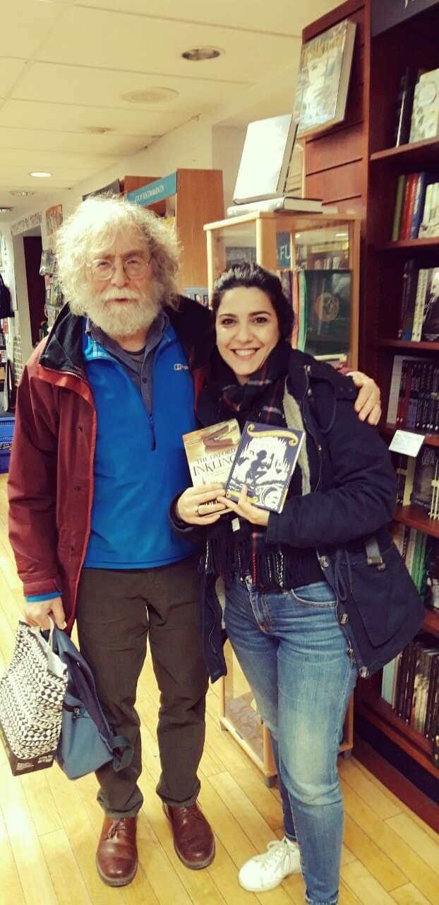 Πώς να ήτανε! Με υποδέχτηκε στον σταθμό των τρένων γιατί πήγα από Λονδίνο και δεν πίστευα ότι τον βλέπω. Δεν πίστευα στα μάτια μου. Πάρα πολύ απλός, πάρα πολύ. Ψέματα, δεν με [00:30:00]υποδέχτηκε στο σταθμό των τρένων! Με πήγε στο σταθμό των τρένων για να φύγω. Δώσαμε ραντεβού στο «Blackwell’s», που είναι το πιο διάσημο ας πούμε βιβλιοπωλείο της Οξφόρδης, είναι αλυσίδα το «Blackwell’s». Και μου λέει: «Θα είμαι στο καφέ του “Blackwell’s”». «Πωπω -λέω- στο καφέ…» Μπαίνω στο «Blackwell’s». Πρώτο σοκ, ότι είμαι στο «Blackwell’s» της Οξφόρδης. Βλέπω, έχει κι ένα ράφι μόνο Tolkien. Ανεβαίνω τις σκαλίτσες στο καφέ, να σου ο Colin. Πολύ γλυκός, πολύ απλός, πολύ ενθουσιώδης. Κατευθείαν να πιούμε καφέ να μιλήσουμε, πού θα πάμε μετά, ξέρεις, είναι και οργανωτικοί οι ξένοι πολύ. «Θα σε πάω εδώ, θα σε πάω εκεί». Και έτσι κάναμε μία πολύ ωραία βόλτα. Πήγαμε φάγαμε σε μία παμπ που συνήθιζε να τρώει και με τους «Inklings», μία ομάδα που είχε ο Tolkien με συγγραφείς. Ο κολλητός του ήταν ο Lewis που έγραψε τη Narnia έτσι; Μας είπε εκεί διάφορες ιστορίες. Και καθίσαμε στο τραπέζι που έτρωγε, λέει, με την οικογένεια τις Κυριακές! Πολύ συγκινητικό. Έκλαιγα φυσικά όλη την ώρα. Μη νομίζεις. Μετά με πήγε στο σπίτι, στο πρώτο σπίτι εκεί στην Οξφόρδη που είχε με την οικογένεια, στο πρώτο κολέγιο. Είχε ένα δαιμονισμένο άνεμο εκείνη τη μέρα στην Οξφόρδη! Δεν μπορούσαμε να μιλήσουμε μεταξύ μας έξω. Και αναγκαζόμασταν και μπαίναμε από μαγαζί σε μαγαζί για να πούμε πέντε κουβέντες. Μια, μισή μέρα, ας πούμε, κάθισα, που πέρασε πάρα πολύ γρήγορα και έφυγα μετά με το τρένο. Και δεν κατάλαβα τι έγινε. Δηλαδή το σκεφτόμουν μετά και έλεγα: «Συνέβη στ´ αλήθεια;» Έχω τις φωτογραφίες να πιστοποιούν ότι συνέβη στ’ αλήθεια. Θέλω να ξαναπάω φυσικά οπωσδήποτε.