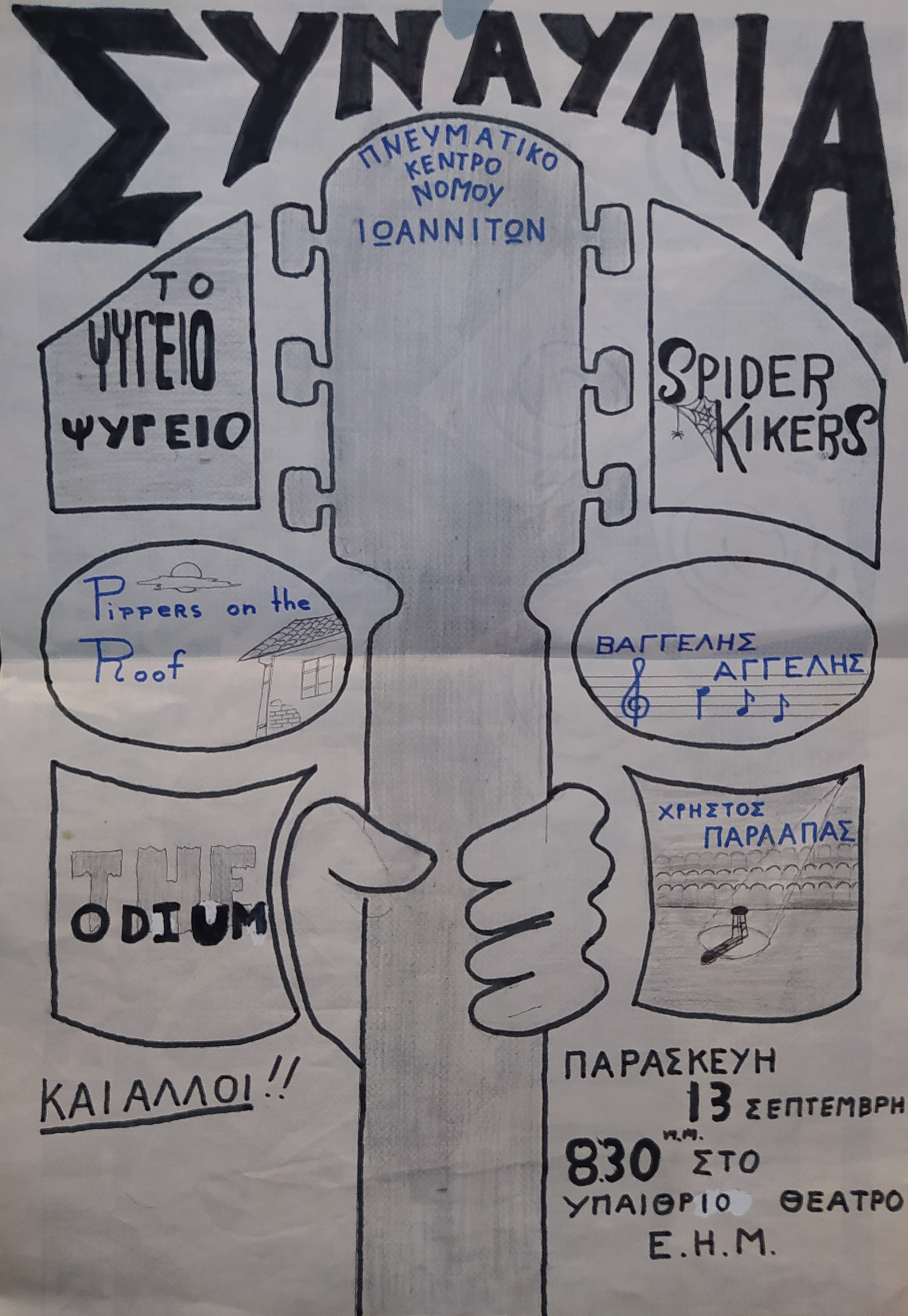Γενικότερα, πώς θα περιέγραφες την κατάσταση στα Ιωάννινα της δεκαετίας του ‘80, όσον αφορά τα μουσικά δρώμενα;   Κοίτα, εγώ σε μια ηλικία,σαι λίγο. Ή θα πάρεις χορδές ή κάτι τέτοιο ή δεν θα πάρεις χορδές για μήνες τώρα για να πάρεις τον τάδε δίσκο, ούτε μου έρχεται στο μυαλό.